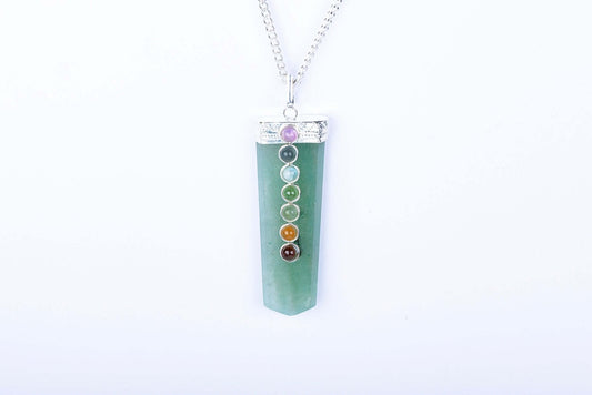 Green Aventurine Chapti Pendant with Seven Chakra Beads