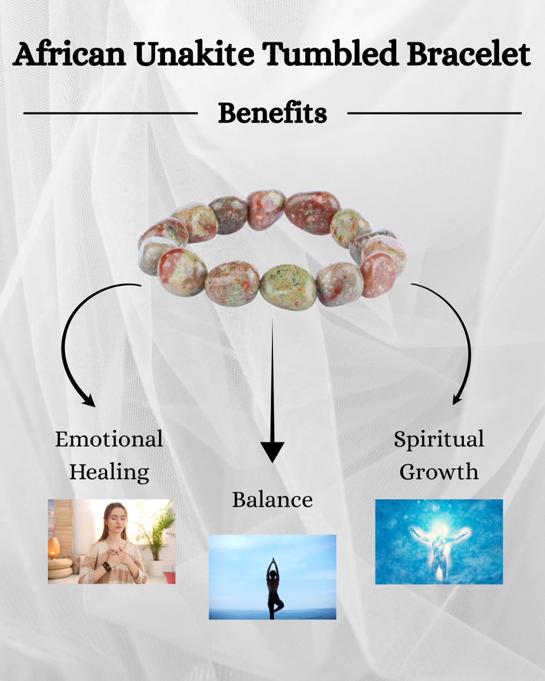 “African Unakite — the stone of emotional growth and harmony. Perfect for grounding your heart and soothing your soul.”