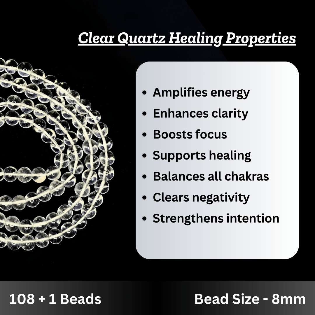 "Amplify your intentions and elevate your meditation with our Clear Quartz Japa Mala – a radiant tool for clarity, healing, and spiritual growth."