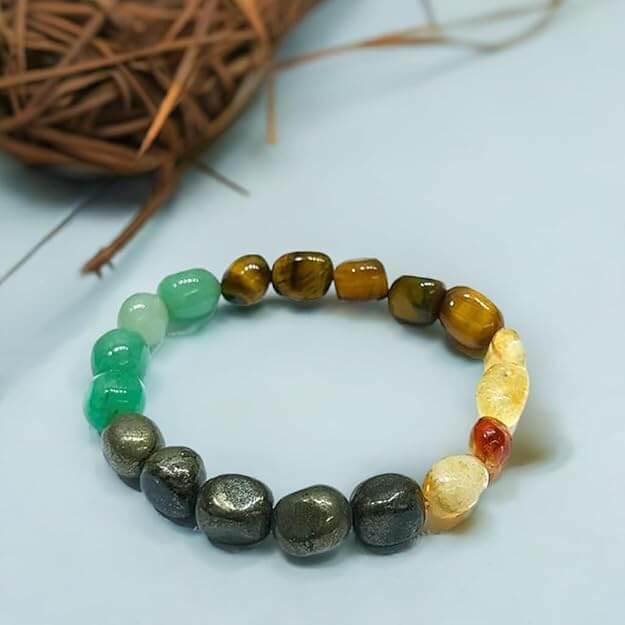A money magnet bracelet made with Pyrite, Citrine, Tiger's Eye, and Green Aventurine is a powerful combination of stones known for their ability to attract wealth, prosperity, and financial success. Here's a breakdown of how each crystal contributes to this purpose: