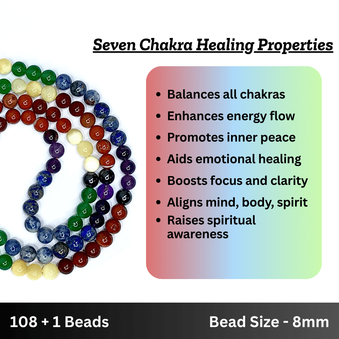 "Align your energy, uplift your spirit, and find inner balance with our radiant Seven Chakra Japa Mala – a powerful tool for healing, meditation, and mindful living."