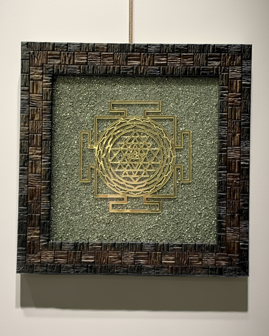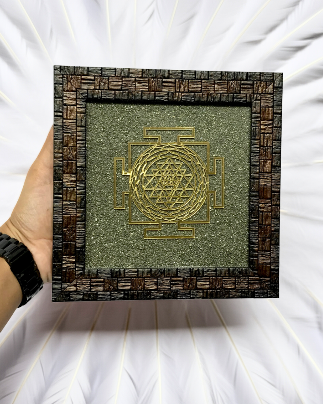 Combined Benefits: Shree Yantra + Pyrite Dust Frame: