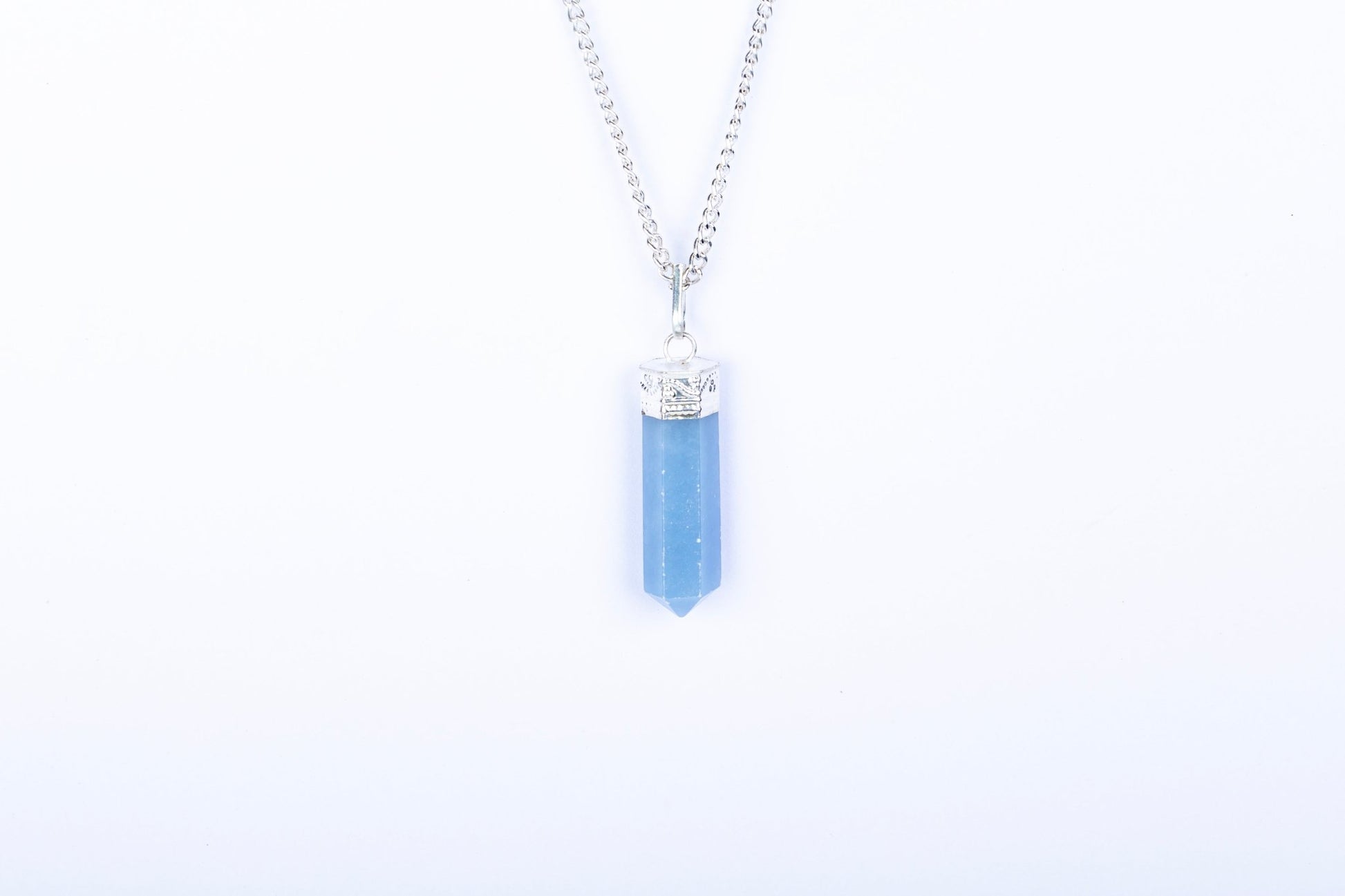 Discover the calming and serene energy of the Angelite Single Point Pendant. This exquisite pendant is crafted from genuine Angelite, known for its soothing blue hue and gentle, nurturing vibrations. The single point design focuses and directs the stone’s energy, making it a powerful tool for spiritual growth, communication, and protection. Whether worn as a stylish accessory or used as a spiritual aid, this pendant offers a deep connection to peace, tranquility, and higher realms.